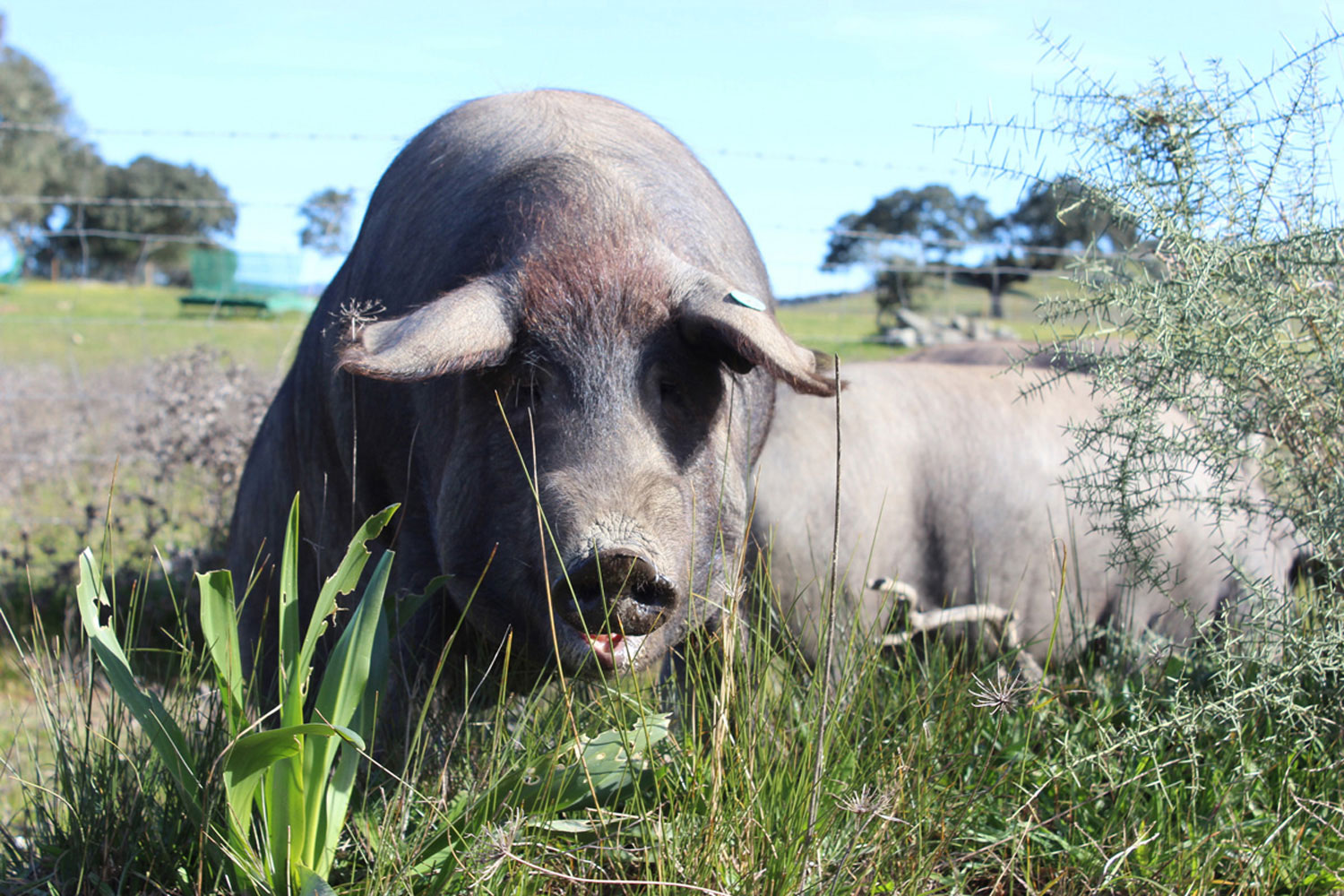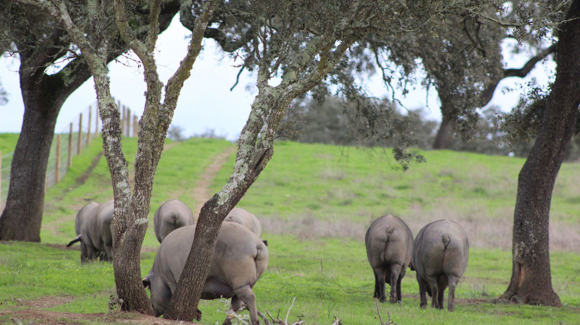 O porco alentejano é o animal que melhor aproveita as condições naturais existentes, na criação ao ar livre.